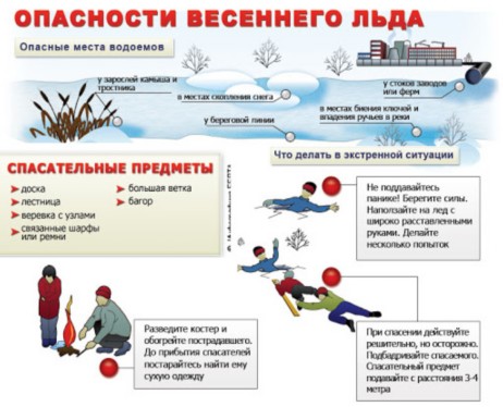 Нельзя выходить на водоемы при образовании ледяных заторов. Не пользуйтесь не санкционированными переходами по льду. Опасно находиться на весеннем льду водохранилищ. Переходить водоемы весной строго запрещается. Особенно недопустимы игры на льду в период вскрытия рек. Прыгать с льдины на льдину и удаляться от берега недопустимо. Такие поступки, как правило, заканчиваются трагически.